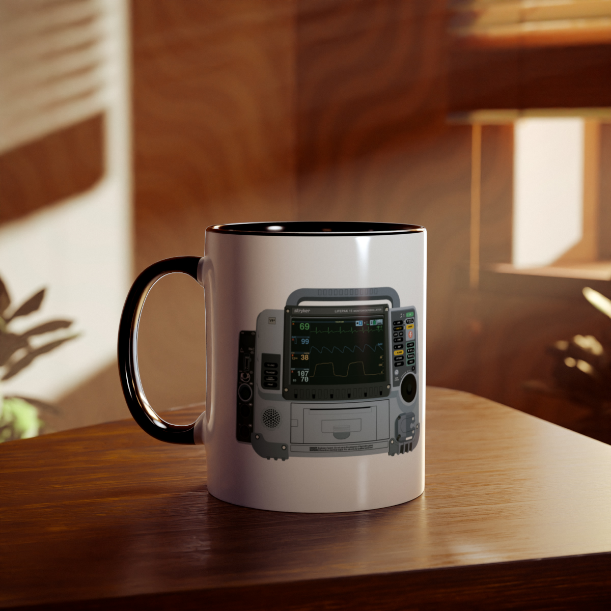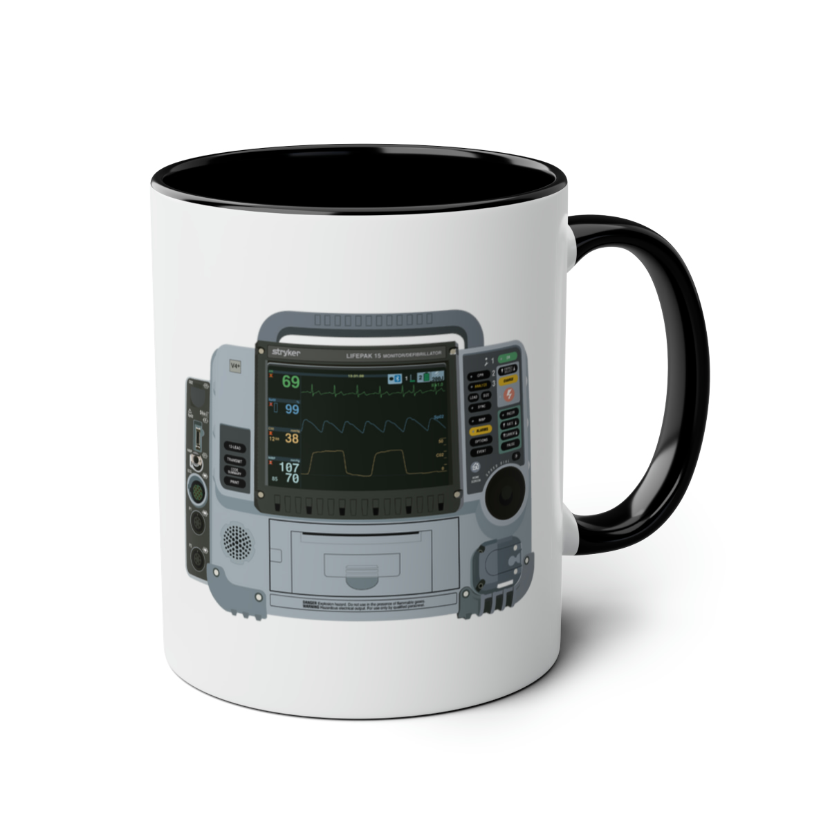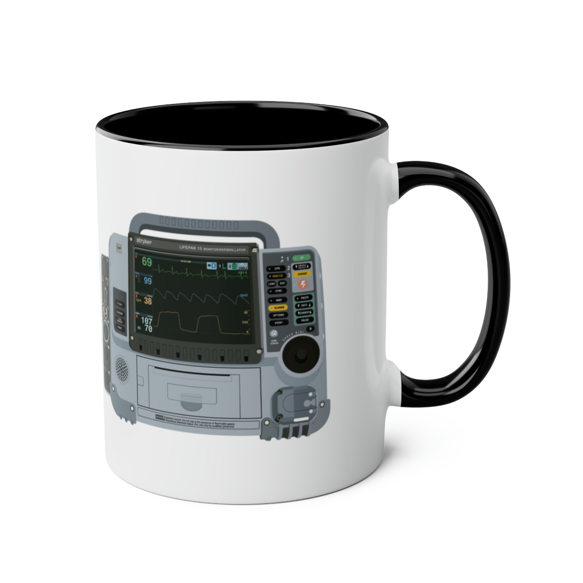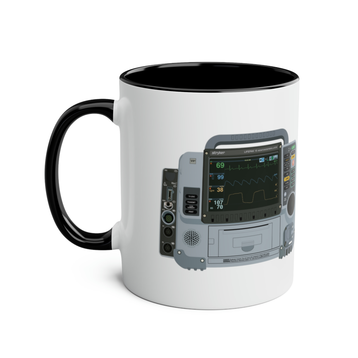 This two-tone mug features a graphic of the widely used Lifepak 15, making it the perfect gift for paramedics, technician’s or anyone else with an interest in the ambulance service! Respond to the next Cat 1 in style with this mug. The two tone comes into play with a black handle, contrasting the white background.