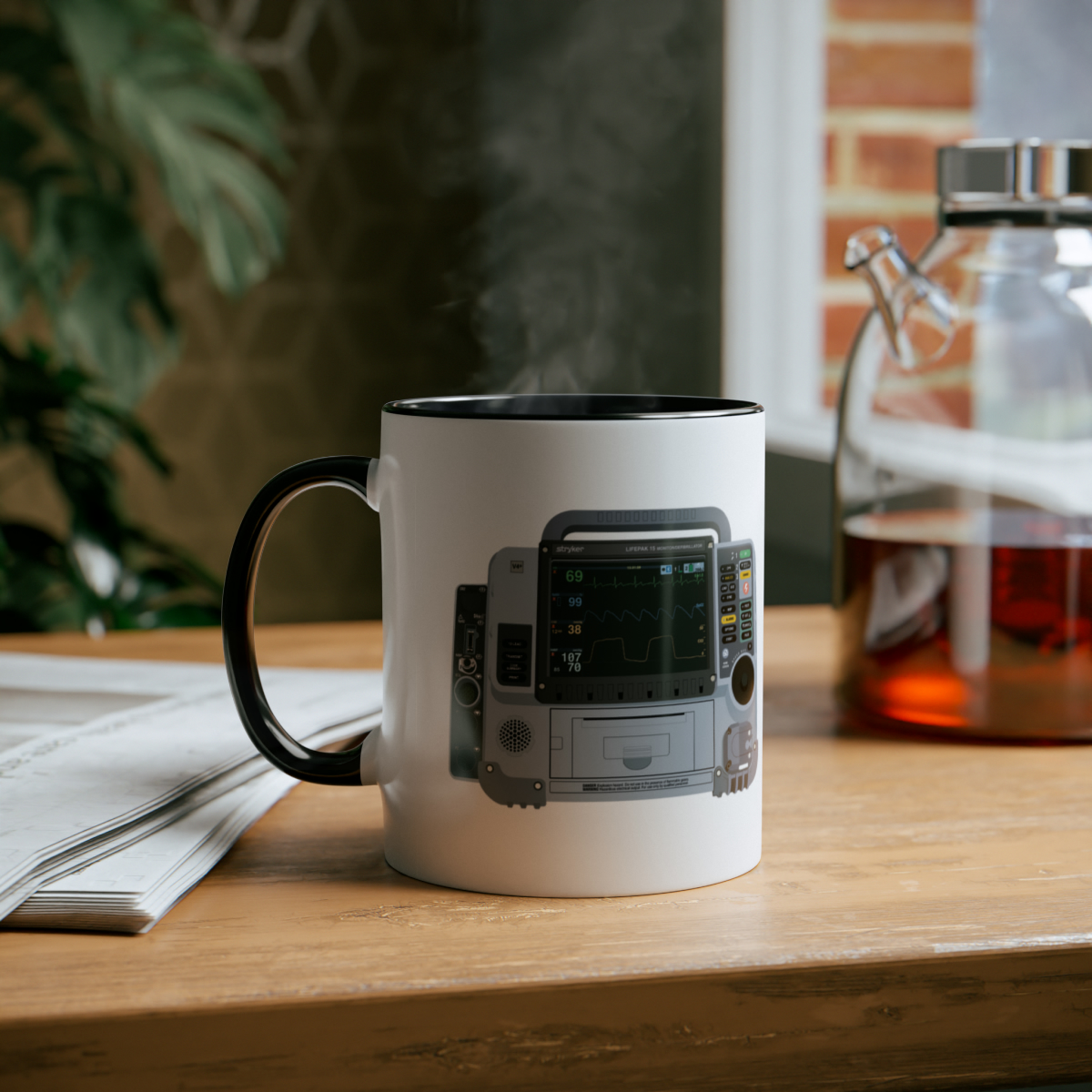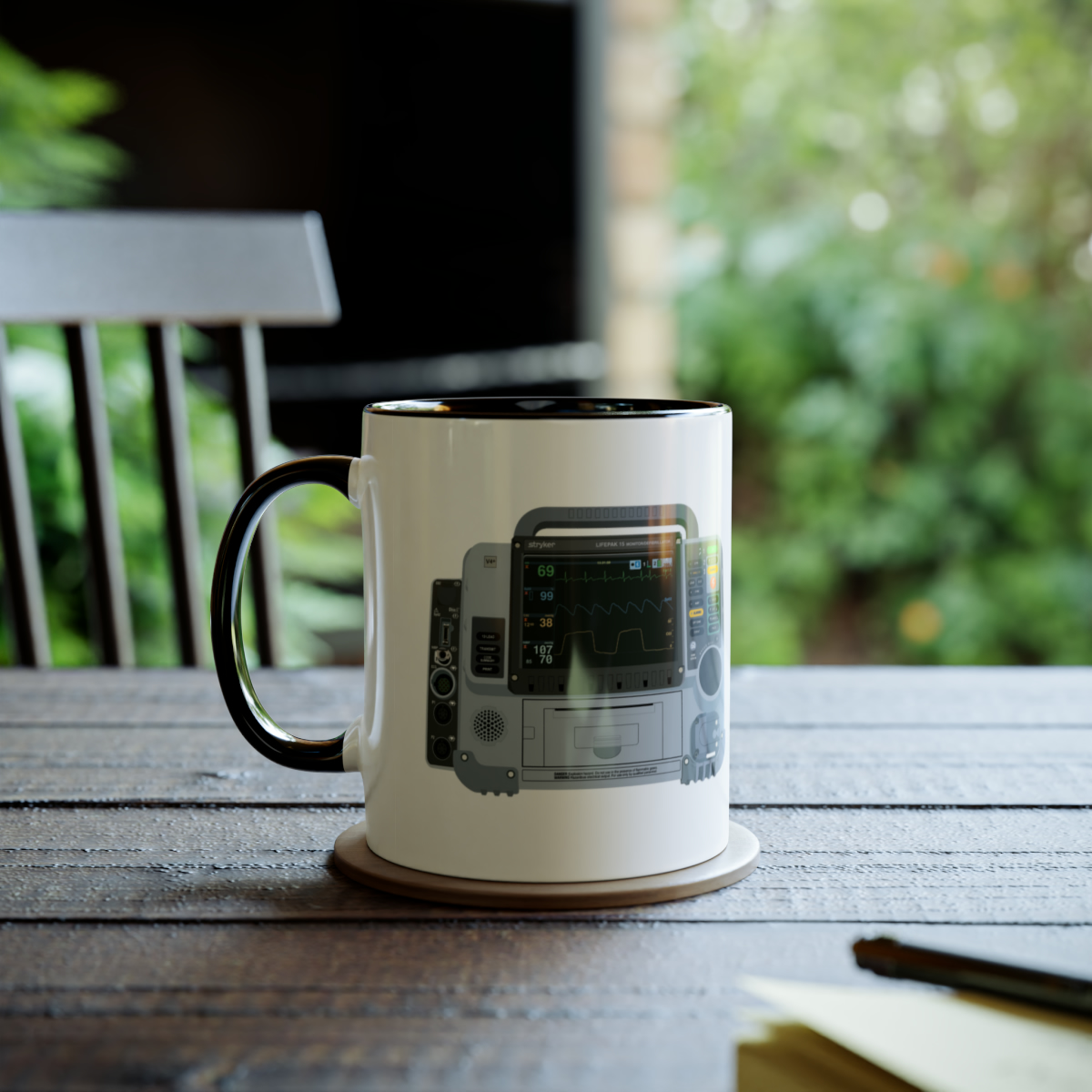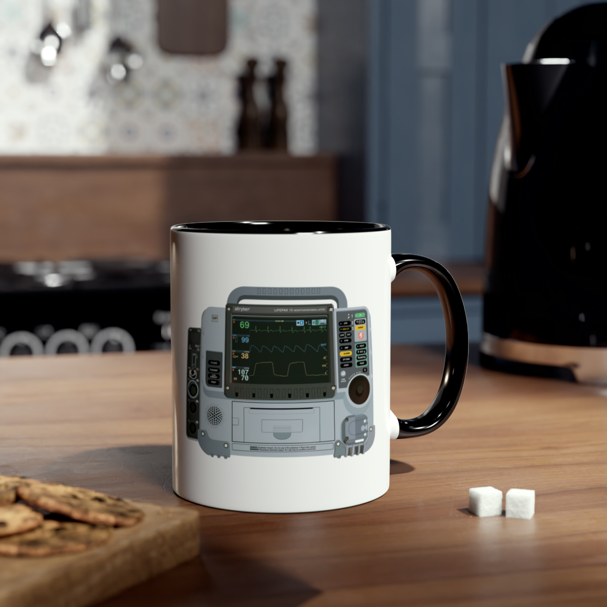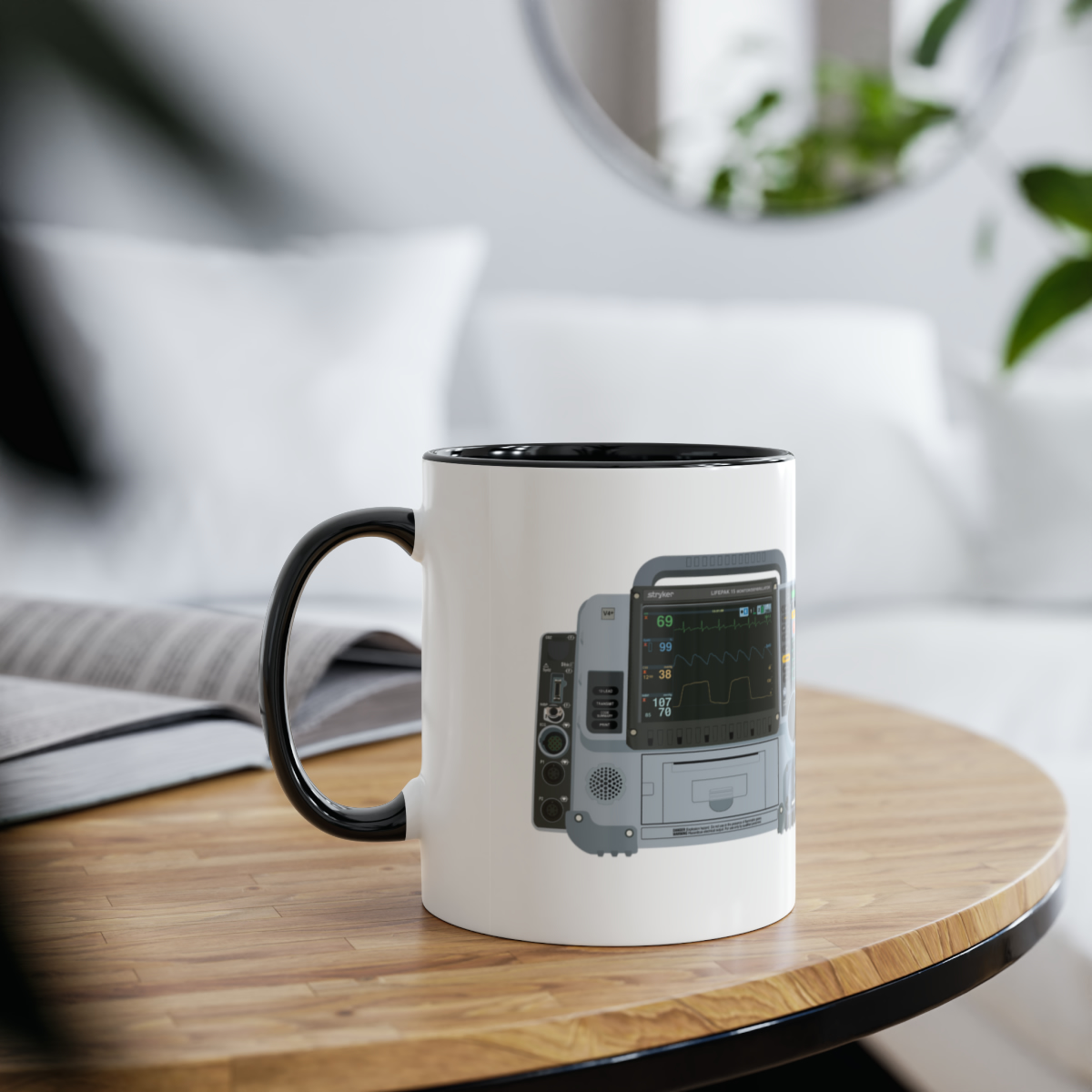 This two-tone mug features a graphic of the widely used Lifepak 15, making it the perfect gift for paramedics, technician’s or anyone else with an interest in the ambulance service! Respond to the next Cat 1 in style with this mug. The two tone comes into play with a black handle, contrasting the white background.